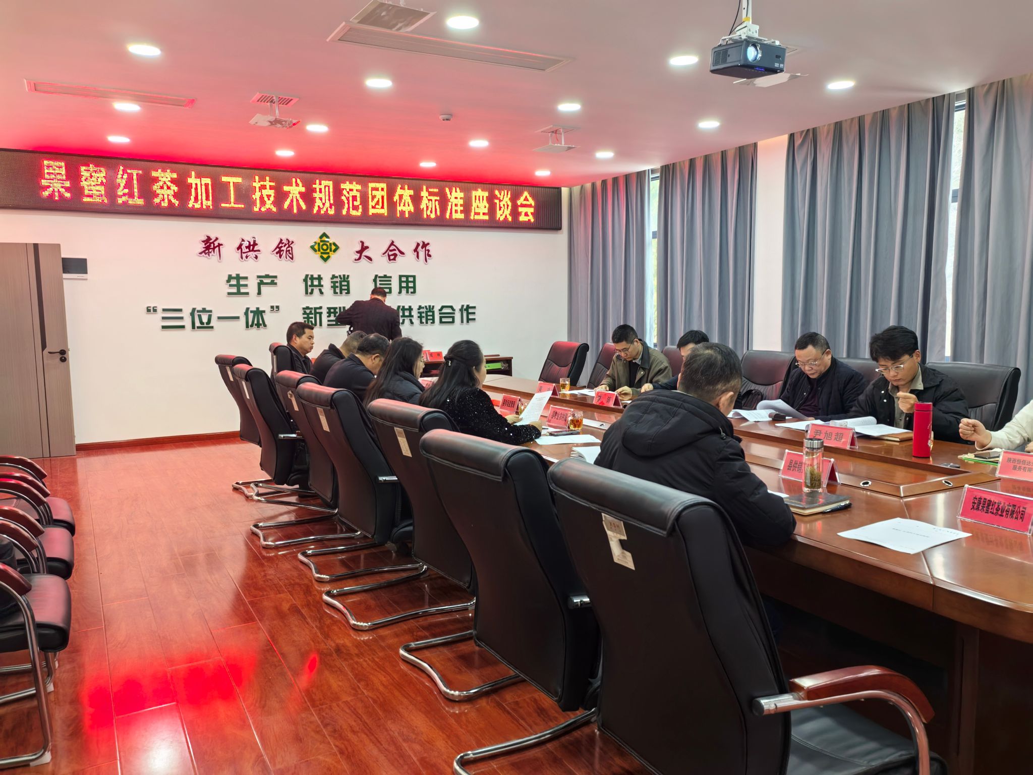 本次会议汇聚了相关部门领导、第三方公司负责人、技术专家及生产企业代表。会议旨在通过集体研讨,完善《果蜜红红茶加工技术规范》团体标准,推动汉阴县果蜜红红茶产业的规范化、标准化发展。